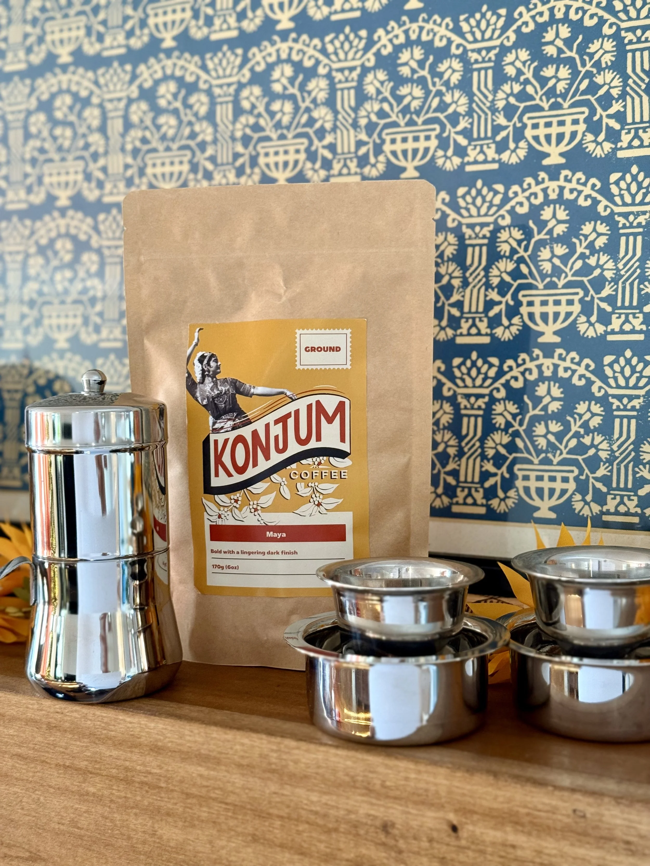 Our coffees are roasted with intention: easy to enjoy, familiar yet new, and always rich in comfort Maya $19.00 Banter $22.00 Timepass $22.00 South Indian Filter $35.00 The Madras Coffee Set $65.00 The Madras Mini $48.00